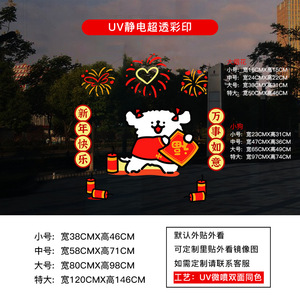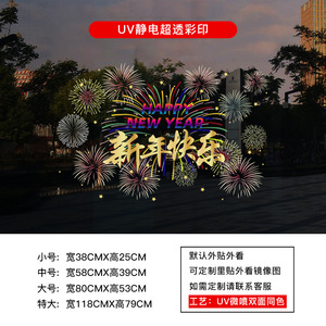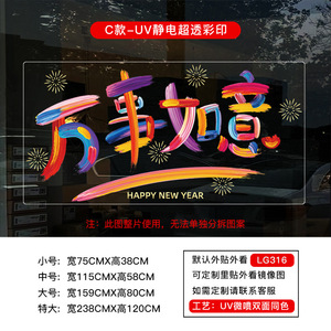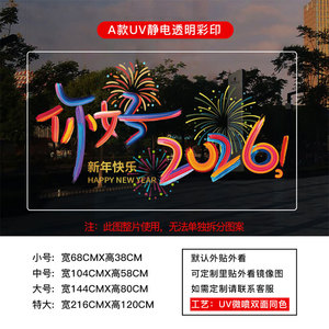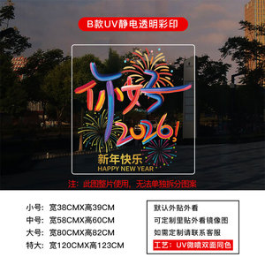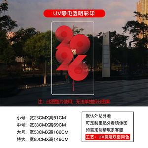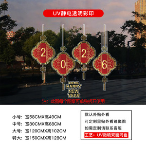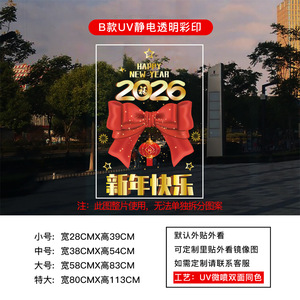新年马年2026春节过年元旦贴纸窗花厨房玻璃门UV静电贴纸装饰布置