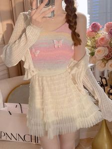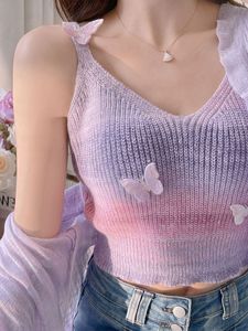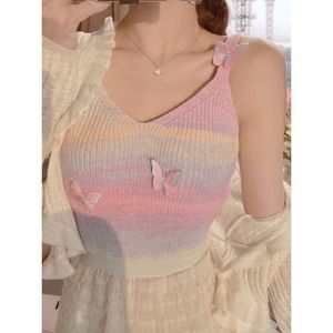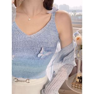 グラデーションブルーバタフライニットキャミソールレディースサマーアウタースイートホットガールショートチューブトップドーパミンウェア