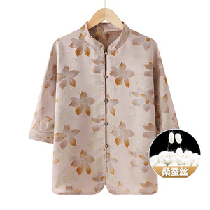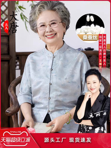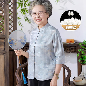 奶奶夏装老人太太高档丝绸上衣中老年人真丝衬衫女妈妈桑蚕丝衣服