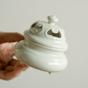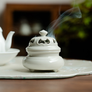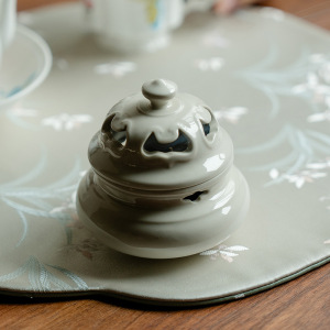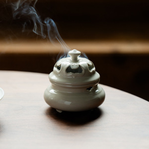 新中式草木灰圣瑶三足香炉陶瓷家用室内香薰炉手工收藏摆件工艺品