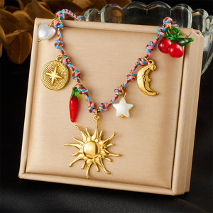 新しいクリエイティブファッションカラーロープネックレスステンレス鋼愛太陽幾何学的なシェルマルチ要素ペンダント電気メッキネックレス