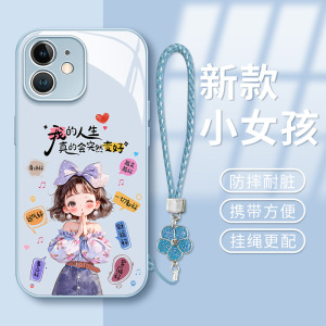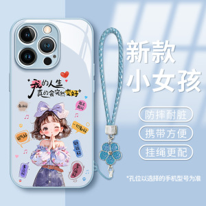 人生は良くなります 女の子用ストラップ Apple 16 携帯電話ケース 15promax 液体ガラス 13 ハイエンド 14 ハード