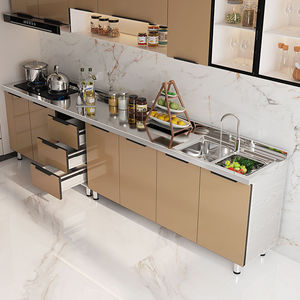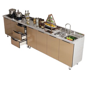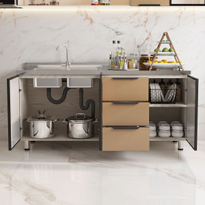 ステンレスキャビネット、コンロ、キャビネット一体型、シンプルで経済的な賃貸収納キャビネット、食器棚、シンクキャビネット、ホームキッチンキャビネット