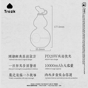 特洛克葫芦充电宝福禄移动电源便携式大容量快充自带线个性创意