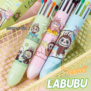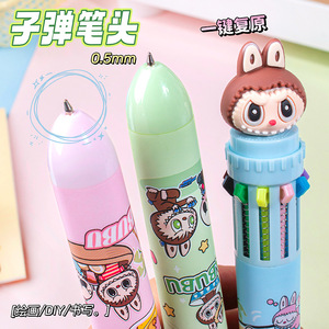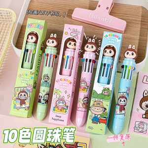 卡通可爱十色圆珠笔学生小礼品手账笔创意按压式多色笔批发可爱