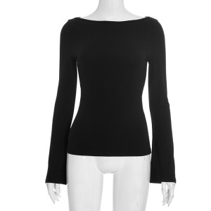 Y25TP247 ヨーロッパとアメリカのファッション秋アマゾン新無地ワンライン襟マイクロフレア長袖スリム T シャツトップ