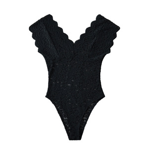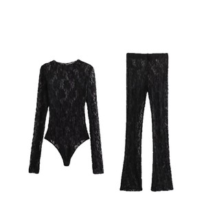 ZA外贸批发 欧美风法式女装修身蕾丝连体衣开叉设计打底裤 021916
