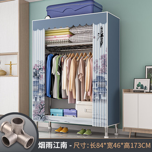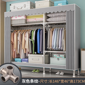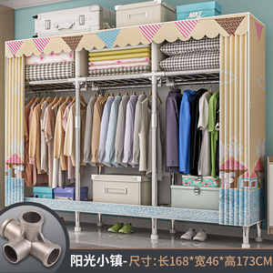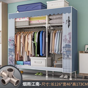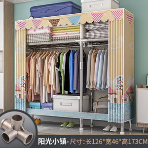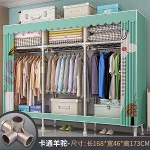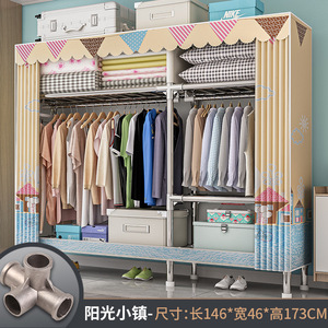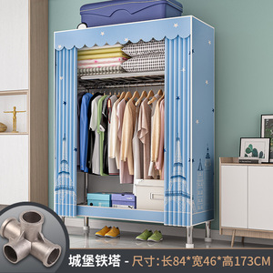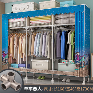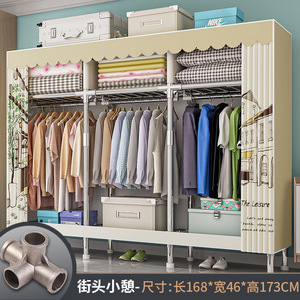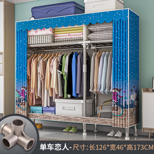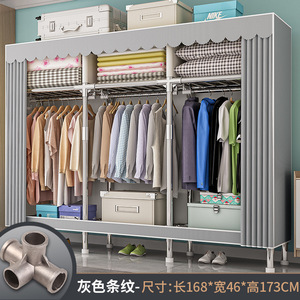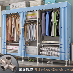 シンプルなワードローブ、家庭用寝室布ワードローブ、厚く強化された組み立て式収納スチールフレームワードローブ、賃貸住宅用洋服キャビネット
