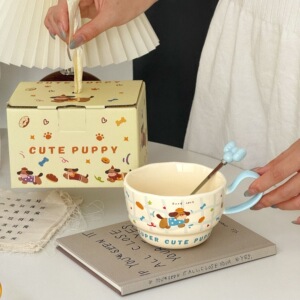 可爱风卡通小狗陶瓷杯咖啡杯高颜值杯创意个性马克杯生日伴手礼杯