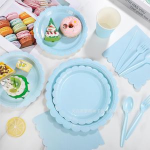 国境を越えた売れ筋のライトブルーの使い捨て厚紙皿子供の誕生日や結婚式のパーティー使い捨て食器セット