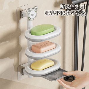 优勤肥皂盒免打孔吸盘壁挂式双层沥水架旋转卫生间浴室香皂置物架