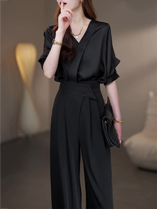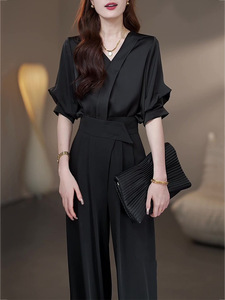 ハイエンドファッション韓国風スーツ春と秋の新しいスタイルの軽い高級感多用途の新鮮な気質シャツとズボンの2点セット