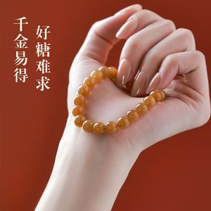 天然新疆和田玉手串且末糖料女士新中式本命年平安黄糖料玉石手链