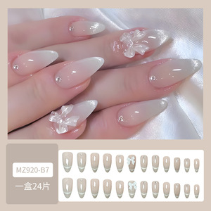 ダイヤモンドがちりばめられたロングマニキュア24枚入りボックス、売れ筋のリボンウェアラブルネイル、シンプルなグリッターキャットアイネイルパッチ