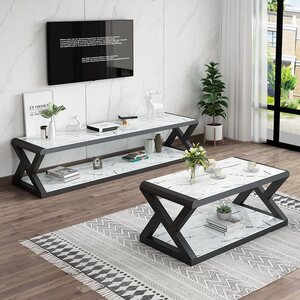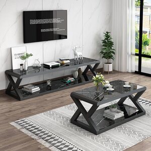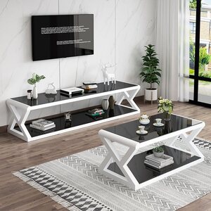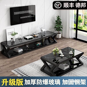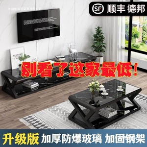 客厅电视柜钢化玻璃客厅柜简约现代茶几电视柜组合铁艺烤漆茶几