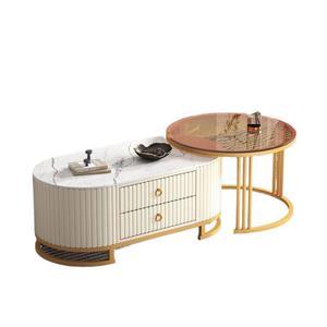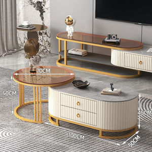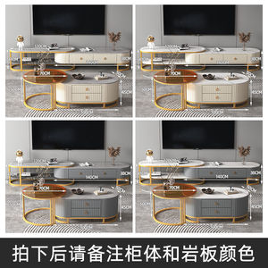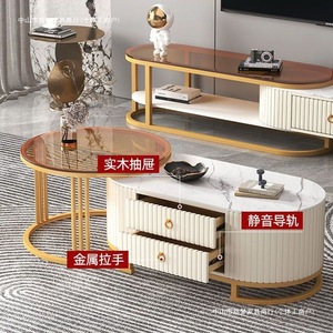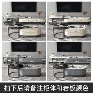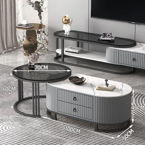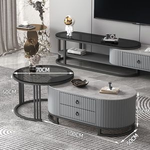 スレートコーヒーテーブルテレビキャビネットライト高級モダンハイエンドホームリビングルーム楕円形伸縮式コーヒーテーブルサイドテーブル組み合わせ