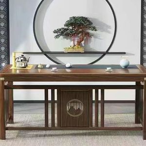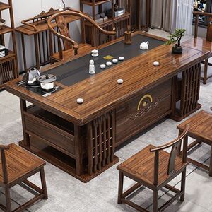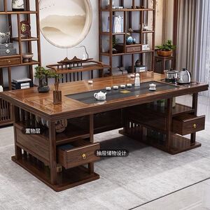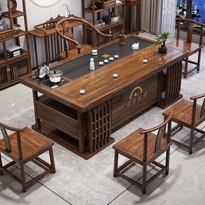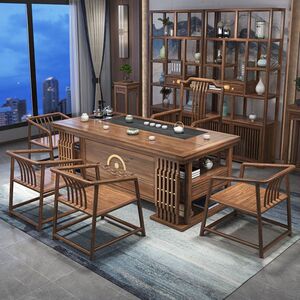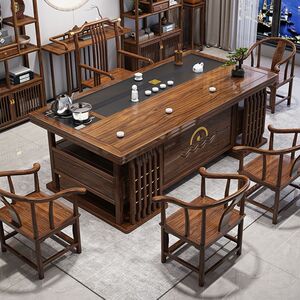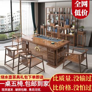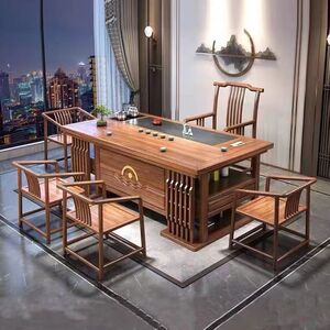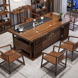 客厅茶台茶桌一体一整套办公室功夫茶几新中式实木茶桌椅组合办用