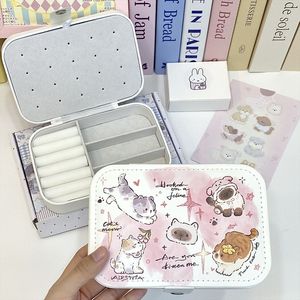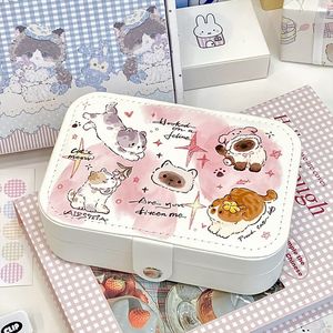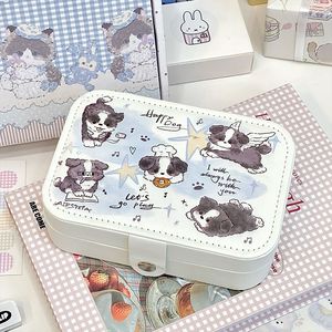 オリジナル漫画猫と犬のジュエリー収納ボックスポータブルイヤリングネックレストラベルレザーハイエンドジュエリーバッグ