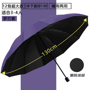 【升级款】黑胶十二骨雅致黑3人款直径130CM