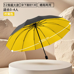 【升级款】黑胶十二骨柠黄色3人款直径130CM