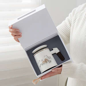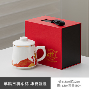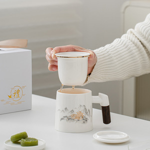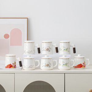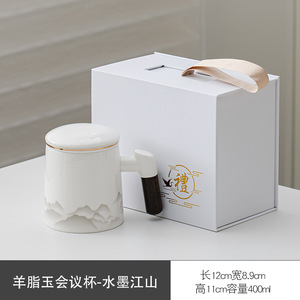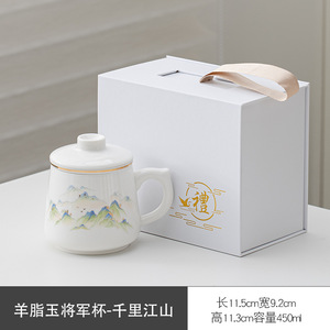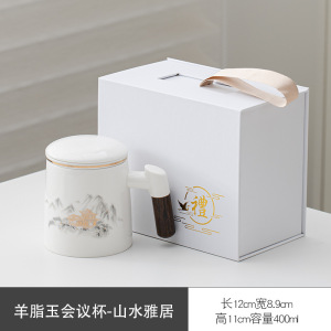 茶水分离办公杯泡茶杯羊脂玉白瓷过滤会议水杯周年庆活动伴手礼