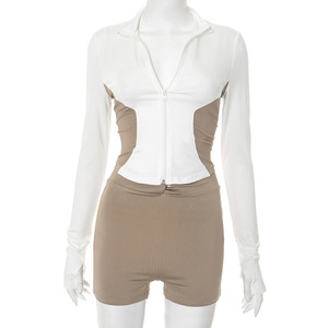 D25ST249 ヨーロッパとアメリカのクロスボーダーレディース春夏スタンドカラーコントラストカラーステッチフィンガージッパーカーディガンツイストスリーポイントスーツ