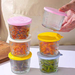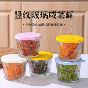 一件代发批发泡菜专用榨菜小碗竖纹咸菜盒玻璃保鲜盒小碗密封罐