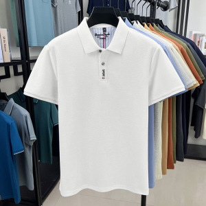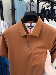 2025 夏中年男性の純綿刺繍ポロシャツビジネスカジュアル半袖ファッションラペルトップ Tシャツトレンド