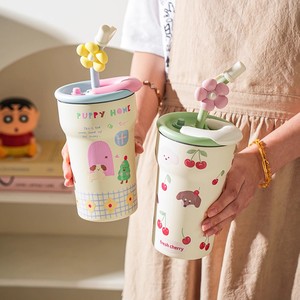 かわいいウォーターカップ、女の子向け魔法瓶カップ、見栄えの良い学生用保冷カップ、かわいいオフィス、コンパクトで持ち運び可能なダブルストロー