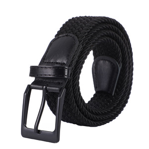 潮男弹力编织腰带休闲帆布松紧腰带女士黑色合金针扣裤腰带新款