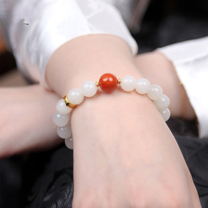 天然本物のホータン翡翠ブレスレット翡翠晴れ白晴れ水南赤肉赤 S925 アクセサリー羊脂肪白品質