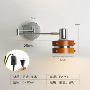 寝室のベッドサイドランププルコード伸縮ロッカーウォールランプレトロ中世無垢材わびさびスタイルB&Bルーム読書壁ランプ