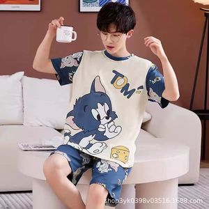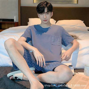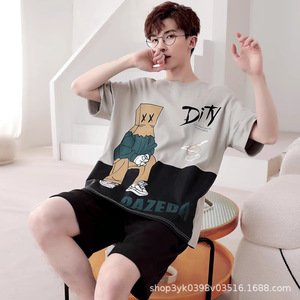 男性用パジャマ 2025 新しい夏薄い若者半袖メンズ夏カジュアルホーム服は春と秋に屋外で着用できます