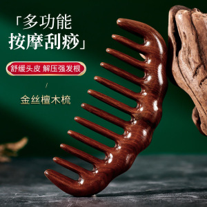ゴールデンサンダルウッドコームポータブル多機能マッサージ経絡コームサンダルウッドマッサージコーム木製コームゴールデンサンダルウッドカーリーヘアコーム