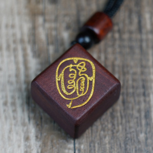 天然雷撃棗木小方糖金光咒ペンダント一体型精彫置物木彫道教用品