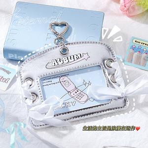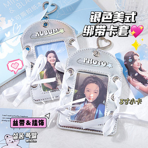 シルバーレザー高価値カードホルダーインスタイルバレエ 3inch 小さなカードディスプレイペンダント保護カバー diy リボンカードホルダー