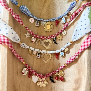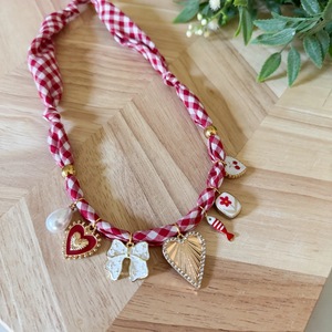 赤白チェックネックレス(ペンダントなし)