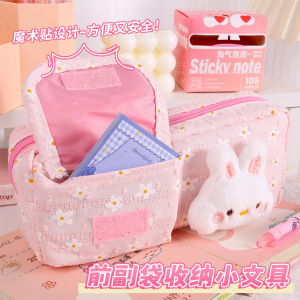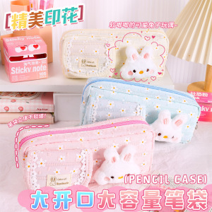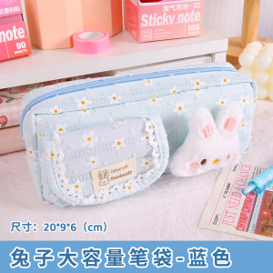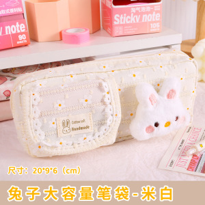 かわいいウサギの鉛筆バッグ漫画パターン鉛筆バッグ大容量正方形小中学生鉛筆バッグ卸売キャンバス文具バッグ