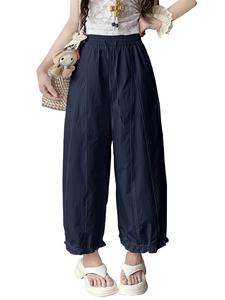 藏青色边灯笼裤女夏季薄款高腰休闲裤宽松显瘦百搭阔腿九分裤