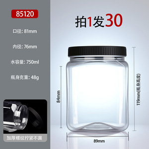 500ml方形塑料瓶食品级pet透明塑料密封罐子坚果包装盒大口径瓶子