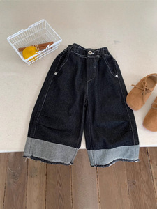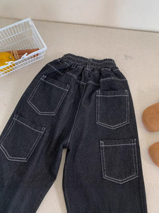 子供用ジーンズ 2025 秋の新韓国スタイルストレートレッグスプライシングローエッジトップステッチルーズパンツ男の子と女の子用トレンディでクール