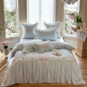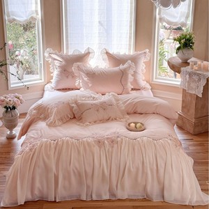 法式复古公主风长绒棉纯棉四件套蕾丝花边少女双人被套床盖床品