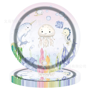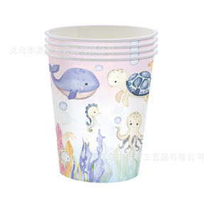 新しい水彩クジラ海中動物テーマパーティー食器ティッシュペーパーカップ紙皿パーティー使い捨て食器