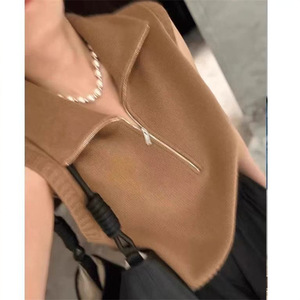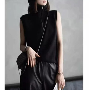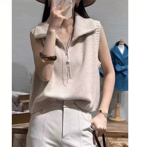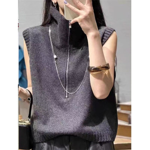 2025 新しいニットベスト女性のための春と秋の多用途ハイカラージッパー無地ルーズノースリーブベストトップ