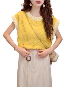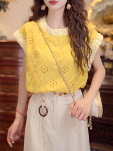 法式气质圆领镂空短袖T恤女2025夏季新款宽松显瘦设计感小众上衣