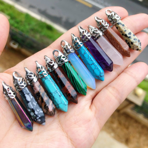 天然石アメジスト瑪瑙六角柱弾丸ペンダントネックレスジュエリーペンダントヨーロッパとアメリカのホットセール