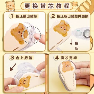 得力黄油小熊按动式修正带黑科技按动舱门改正带可换替芯学生专用