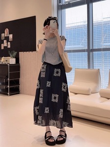 JING リネンスカート ~ 100 ラミーエレガントな刺繍ハイウエストスリムスカート 2025 夏の新しいスタイルの女性