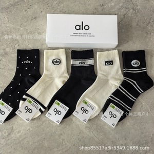 alo 新品袜子男女棉袜中筒运动款跑步袜盒装四季吸汗透气中筒袜批
