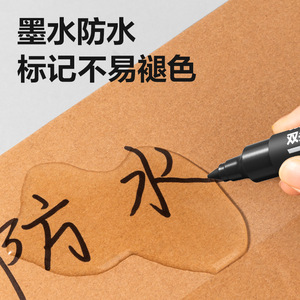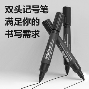 得力S555大双头记号笔黑色油性笔防水大头笔斜头马克笔勾线笔10支
